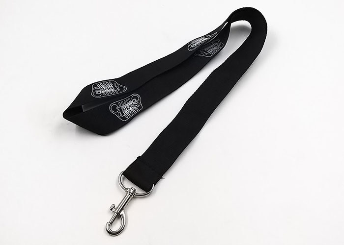 China Großhandel Custom Logo Schwarz Druck Polyester Lanyard Billig Halsband für die Ausstellung