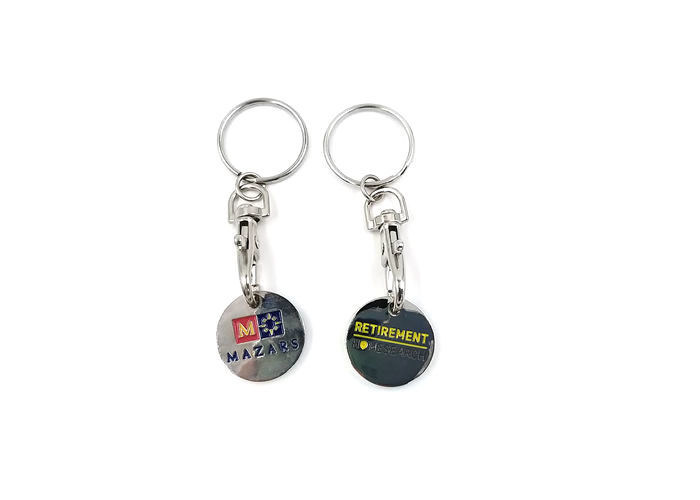 Logo angepasst Doppelseitige Blacnk Einkaufswagen Münzhalter Metall Schlüsselbund